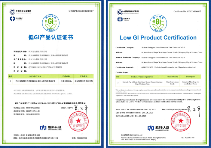 光友32年打造薯類方便主食健康品質(zhì):光友薯業(yè)32年來(lái),專做健康薯業(yè),在中國(guó)乃至世界把紅薯、馬鈴薯做成一大健康主食產(chǎn)業(yè)。光友薯業(yè)歷經(jīng)32年來(lái),光友綿陽(yáng)米粉低GI健康方便主食發(fā)布,是繼光友酸辣粉低GI健康方便主食后,又一個(gè)健康爆款產(chǎn)品上市。光友低GI健康薯類方便主食是經(jīng)光友薯業(yè)技術(shù)創(chuàng)新,經(jīng)國(guó)家權(quán)威檢測(cè)機(jī)構(gòu)營(yíng)養(yǎng)成分檢測(cè)和臨床試驗(yàn),取得低GI食品報(bào)告,由中國(guó)權(quán)威認(rèn)證機(jī)構(gòu)中檢科檢測(cè)后,為光友薯業(yè)頒發(fā)了光友綿陽(yáng)米粉低GI健康方便主食認(rèn)證證書,這是線上線下各位領(lǐng)導(dǎo)、嘉賓、朋友,關(guān)心支持光友32年來(lái)共同取得的成果!